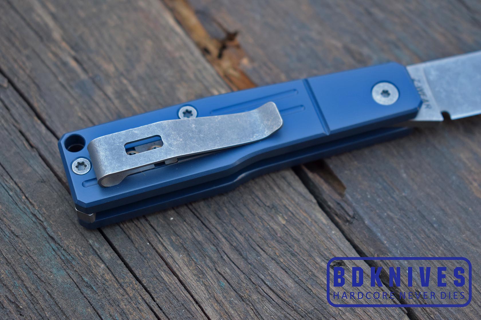 Galéria Bronson 20. januára 2026 Slipjoint : Z -WEAR 61HRC , Full lenght 175 mm , Blade lenght 68 mm , Scales are from aluminium ENAW2017 and cerakoted Navy blue ← Lil´ Frenkie RAGERUNNER →